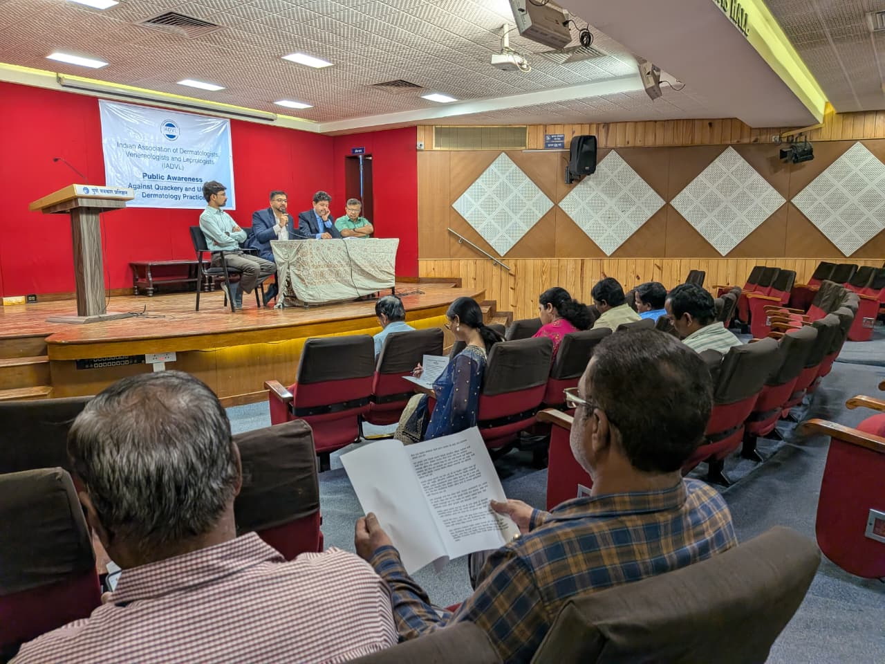 The event went on for more than an hour with a lot of interest shown by the media. Their questions ranged from our association’s agenda of unsafe Dermatology Practices to Quackery and also covered topics of steroid misuse, Dermatosurgery and Hair transplant surgeries being carried out by non-dermatologists. They were also made aware of treatments & procedures being blatantly carried out by beauticians & parlors. Even questions pertaining to lasers / botulinum toxin usage and who all should be doing them were raised and answered by our team.The media were also made aware of rules & regulations of NMC pertaining to RMP practises.