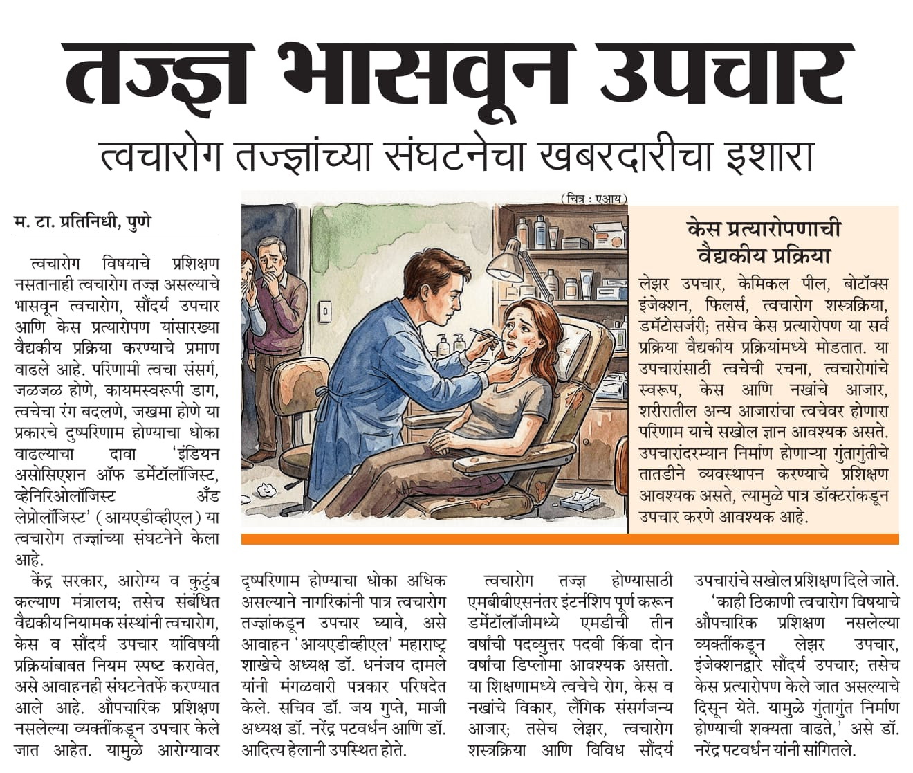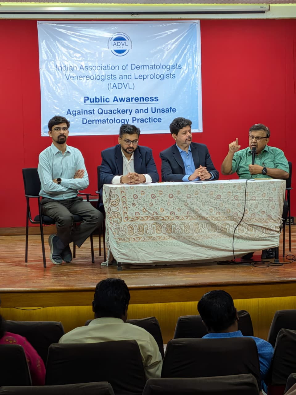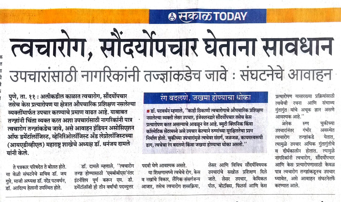 IADVL Maharashtra completed a very successful Press meet at Press club of Pune which was well attended by approximately 20 news reporters. The press meet was addressed by Dr Dhananjay Damle, President IADVL Maharashtra, Dr. Jay Gupte Secretary IADVL Maharashtra, Dr. Narendra Patwardhan Senior Practising Dermatologist & past VP IADVL National and Dr. Aditya Holani Pune chapter of IADVL representative.
